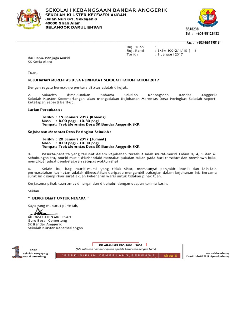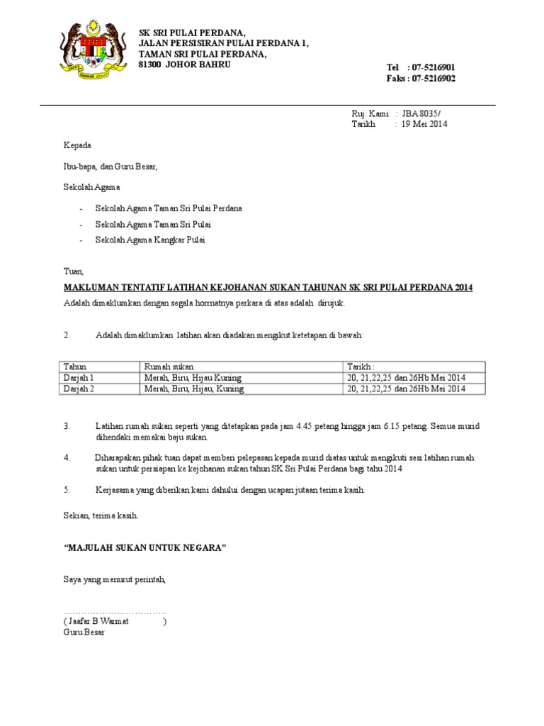 . 800 PAGI 1 Mengumumkan ketibaan En. Cover kejohanan olahraga msspp zon butterworth dan. Contoh surat pemberitahuan pelaksanaan pbs kepada ibu bapa.