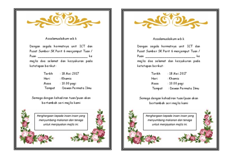 Isi Dalam Jemputan Majlis Tahlil Dan Doa Selamat